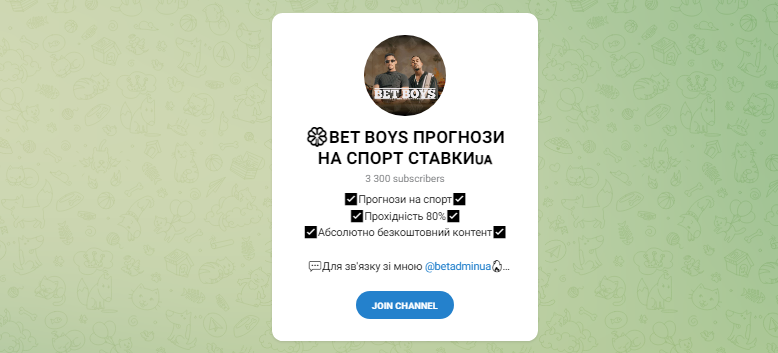 Умение назначать проходные ставки приходится с опытом. Беттеры не ограничены в возможностях тренировок, но когда дело касается реальных букмекерских купонов, то ошибка обернется финансовыми потерями. Администратор Телеграмм-канала 🍀BET BOYS ПРОГНОЗИ НА СПОРТ СТАВКИ🇺🇦 обещает полную поддержку в заработке денег на спортивных прогнозах. Является ли реальным его предложение или же это очередной фейк, покажет небольшой обзор.